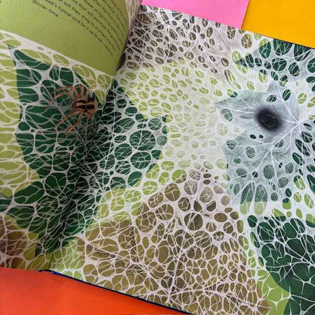 From classic orb webs, to spectacular tent webs, hidden trapdoor webs and water webs that attach to the surface of a flowing river, The Secret World of Spider Webs reveals the incredibly diverse ways spiders catch their prey. Featuring foil-stamped illustrations that accentuate the intricacy of spiders' web designs, The Secret World of Spider Webs is a remarkable, beautiful and spine-tingling tribute to spiders. The Secret World of Spider Webs is the first in a new series of children's non-fiction books that reveal under-appreciated and hidden natural wonders that are essential to Earth's biodiversity, including phytoplankton (supply half of the oxygen on Earth), bird nests (birds are vital to reforestation, pollination and pest control) and mycelia (underground network of fungi that are the connectors in forests).