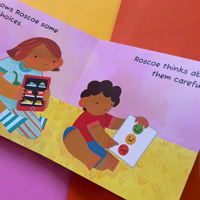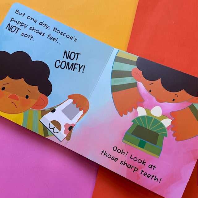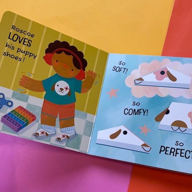 Come along with Roscoe & Ivy as Roscoe transitions to a new pair of shoes! Roscoe really, really loves his puppy shoes. They’re so soft! So comfy! So… PERFECT! When his puppy shoes get to be too small, it’s time for a new pair of dinosaur shoes. Dinosaur shoes?! Those shoes are different, and new things can be scary. It’s a good thing Roscoe’s gentle big sister Ivy knows how to help him get used to his new shoes. Roscoe & Ivy series focuses on the daily life of a neurodivergent family Created by neurodivergent author and illustrator drawing from their own lived experiences Endnotes offer gentle guidance on introducing kids to new things
