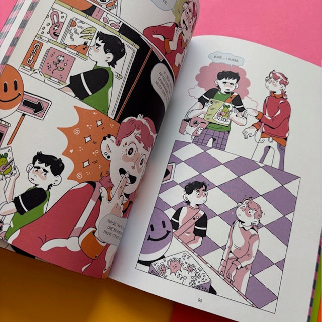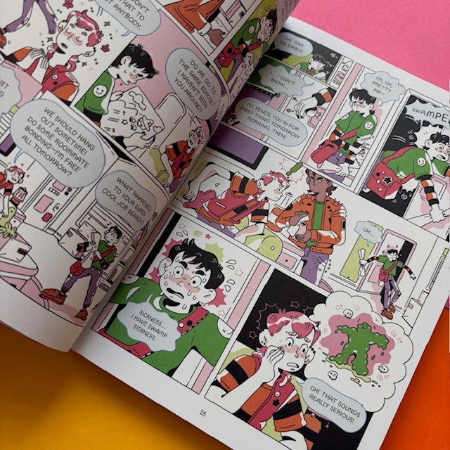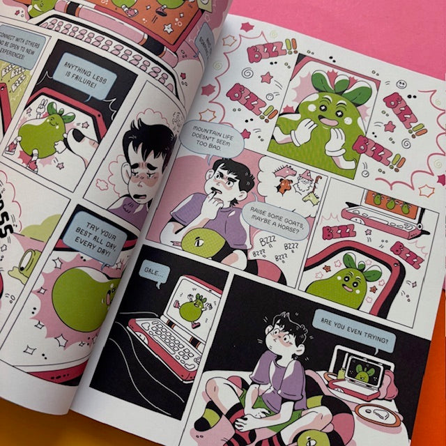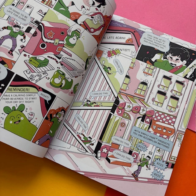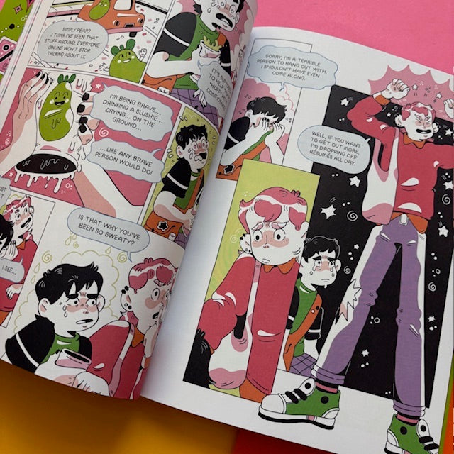 Gale’s trying to master his anxiety, and he’s hoping the latest wonder-cure “Simply Pear” can help. Not turning up to his art classes and feeling like everyone is a lot cooler and more in control than he is, he chugs his Simply Pear products and takes advice from its demanding app. Oh, it’s definitely not working. His plan is thrown into chaos by the bubbly Aiden, who needs a buddy to help him get a job. Can this colourful and heartfelt romp through shoddy part-time jobs help Gale out of his anxious bubble? There’s only one way to find out.