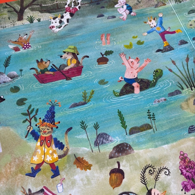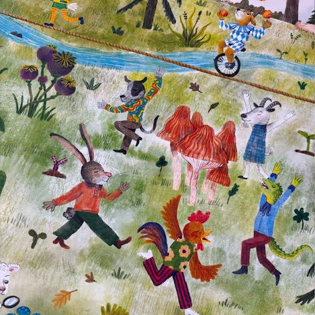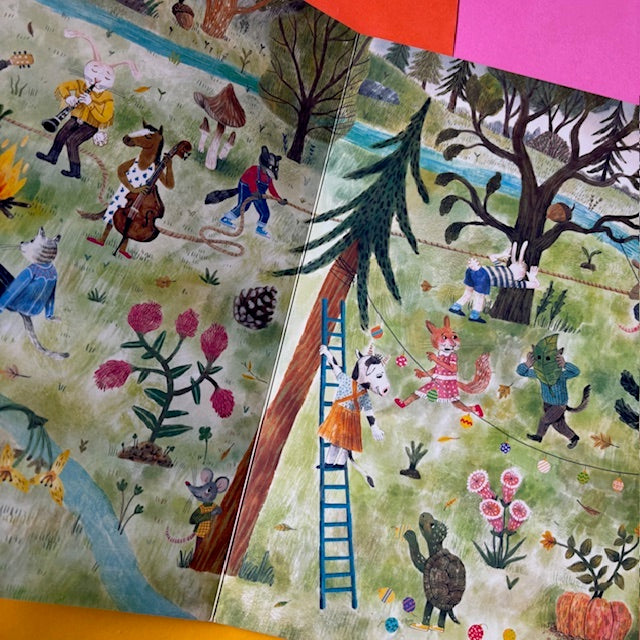 The Fantastic Forest is a large concertina board book that invites readers on an immersive journey into a magical world. Unfolding to an impressive almost three and a half meters, this wordless book encourages readers to lie down and explore its beautiful details.