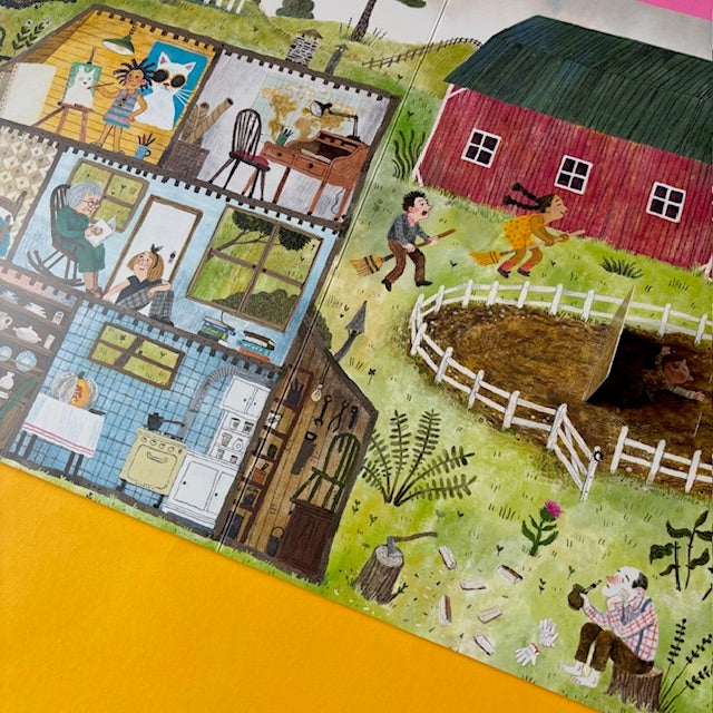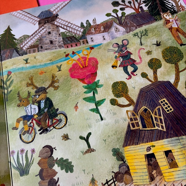 On one side, readers will discover the secret life of the forest's enchanted flora and fauna. The other side introduces the humans who live in harmony with nature, with hidden creatures peeking out from behind flaps.
