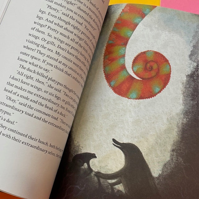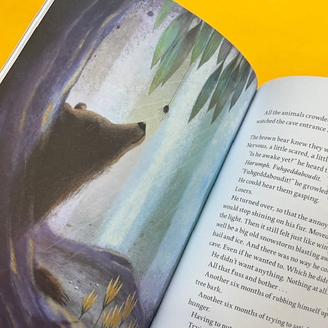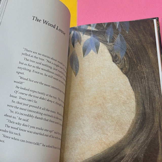 The tree is as old as the world, covered in cracks and crevices and full of life. A sloth hangs on a branch all day but longs to somersault through the woods. The moon moth caterpillar watches her friends shed their skins and decides to do things differently. The barn swallow feels like she's lost something but can't remember what. The common toad disagrees with his name and the duck-billed platypus might have something to say about that. The red squirrel has the strangest sense that he might be a human for one, that looks like a watch on his wrist! Wherever you look in this tree, another creature has a thought, a dream, a decision, a question...