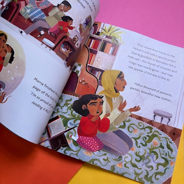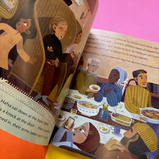 Join Hafsa and her family as they prepare to spend Eid with their loved ones, decorating the house and cooking a feast. But, when Hafsa’s dad starts packing up her favourite snack, the halwa, to share with the neighbours, Hafsa's community rallies together to save the day. With words from award-winning author Hiba Noor Khan and warm, charming art from talented newcomer, SInggih Cahyo Jadmiko, this is the perfect gift to celebrate Eid.