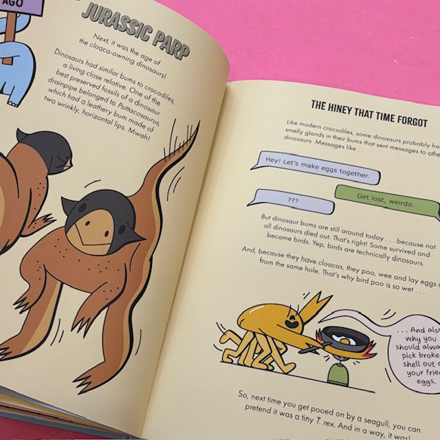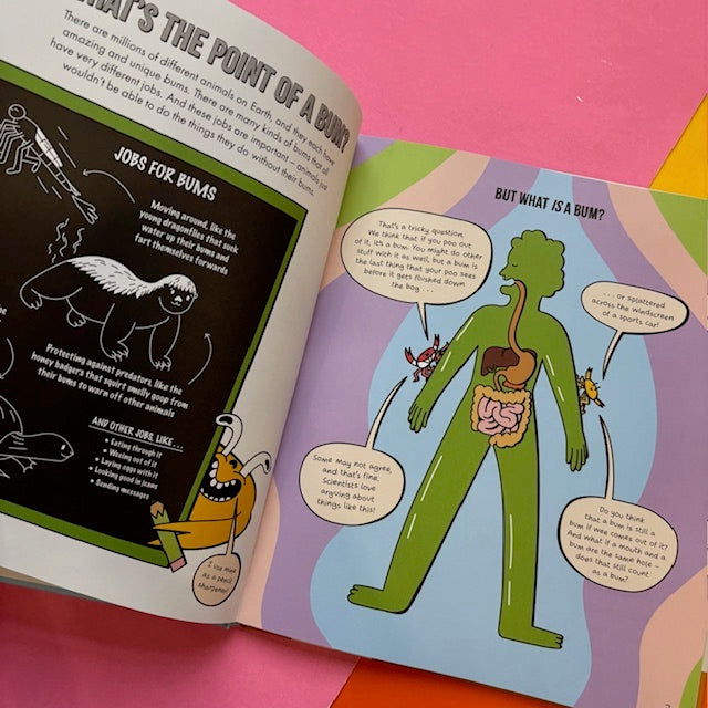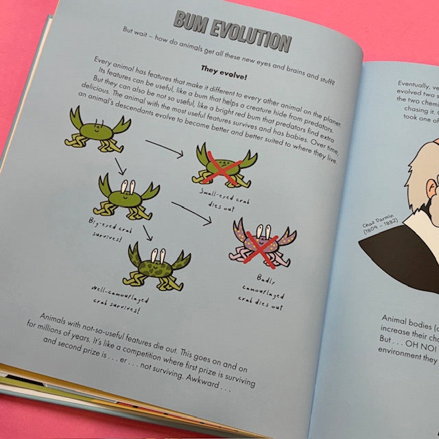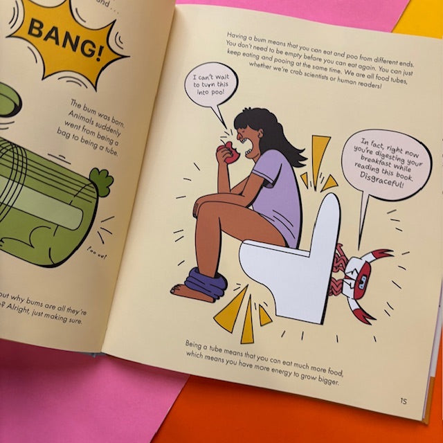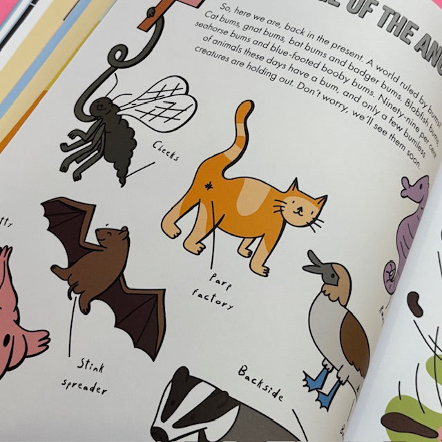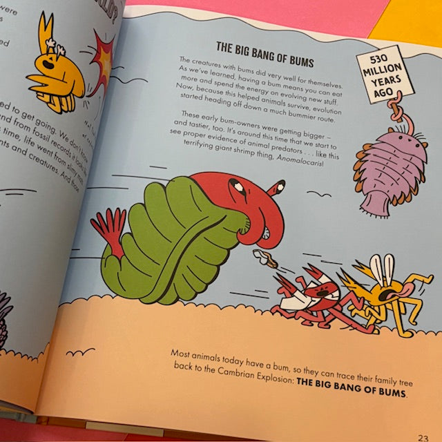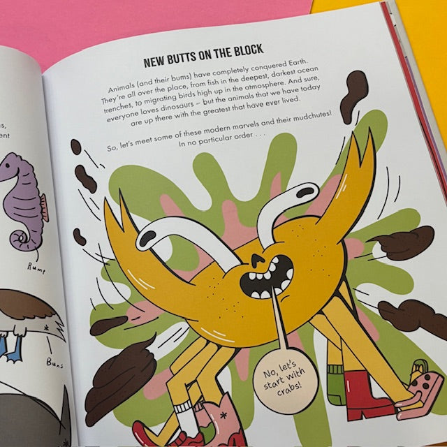 Join The Crab Museum and illustrator Inga Ziemele for a hilarious kids’ guide to evolution and the natural history of this noble body part. Get up close and personal with big bums, small bums, stinky bums, glow-in-the-dark bums, jet-engine bums, fossilised bums, and even an animal with 1,000 bums! Along the way, discover the surprising uses animals have found for their bums, and even witness a terrible time in Earth’s history when there were no bums at all.