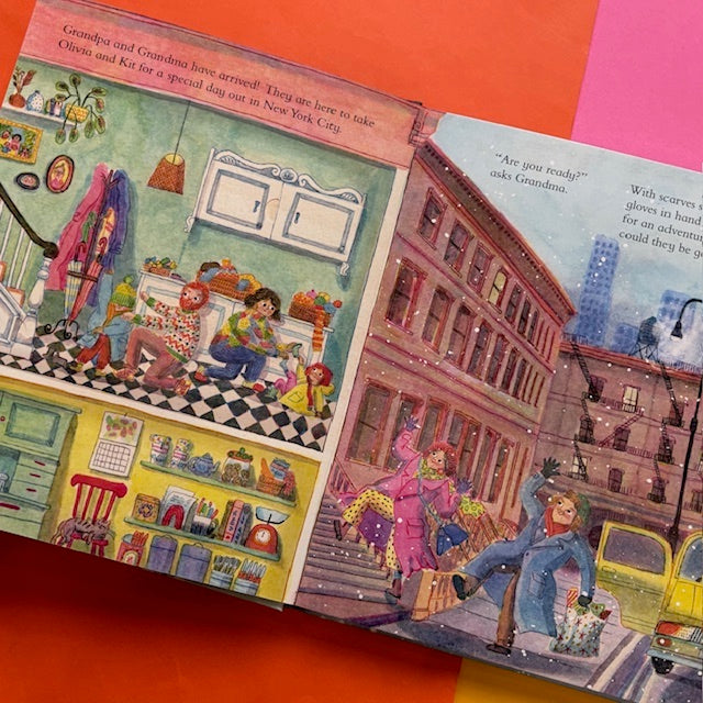 Join Kit and Olivia for a day out in New York as they journey through the city, taking in some of its most famous sites. This atmospheric picture book celebrates the joy of sharing traditions with loved ones at Christmas time.