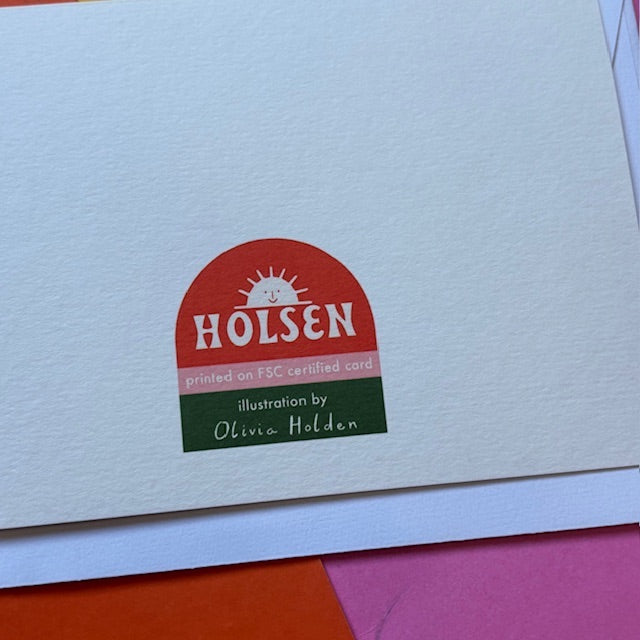 Card by Holsen Studio, printed on FSC certified card stock, using vegan friendly & fully compostable inks.