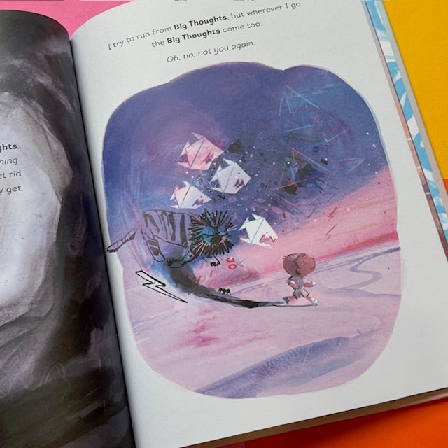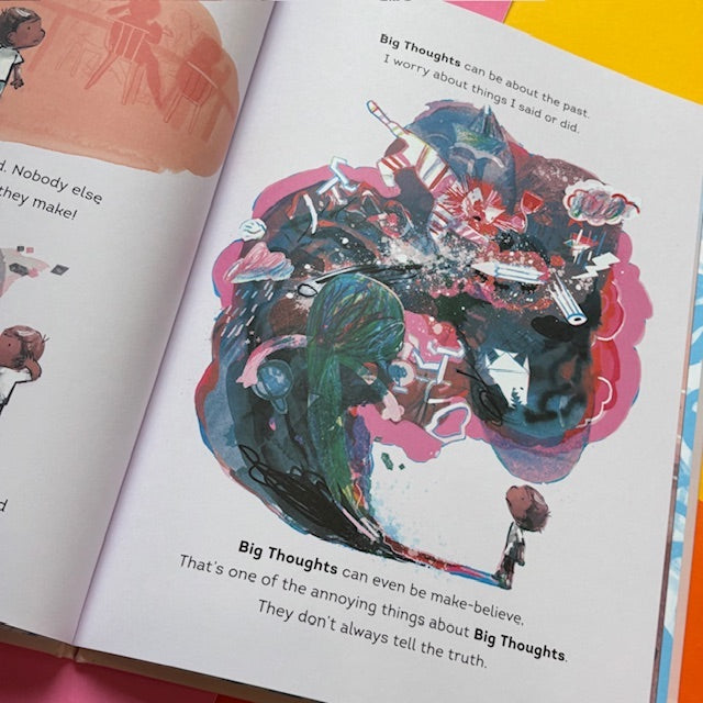 Everyone has worries: BIG THOUGHTS. These Big Thoughts can be invisible, but loud – nobody else can hear the racket they make inside your head. Big Thoughts can be about the future – things that haven't and won't ever even happen – or about the past. Big Thoughts can even be make-believe. That's the annoying thing about Big Thoughts … they don't always tell the truth.