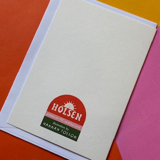 Card by Holsen Studio, printed on FSC certified card stock, using vegan friendly & fully compostable inks.