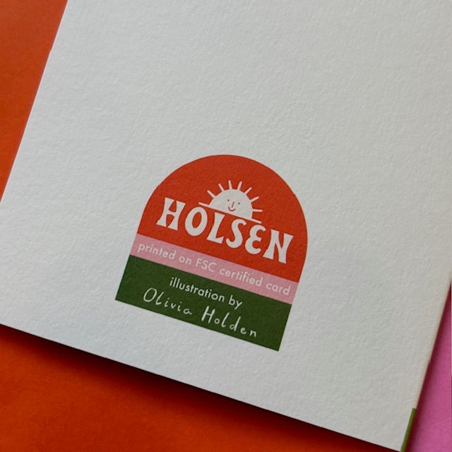 Card by Holsen Studio, printed on FSC certified card stock, using vegan friendly & fully compostable inks.