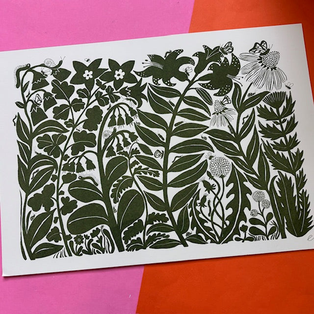 Inspired by the tangle of plants, flowers and weeds growing that attracts so many different little creatures in her garden