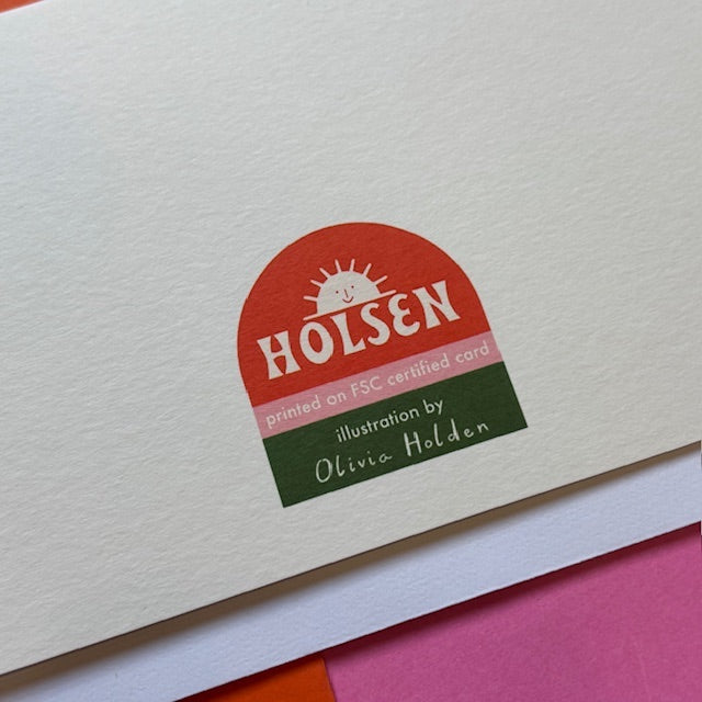 Card by Holsen Studio, printed on FSC certified card stock, using vegan friendly & fully compostable inks.