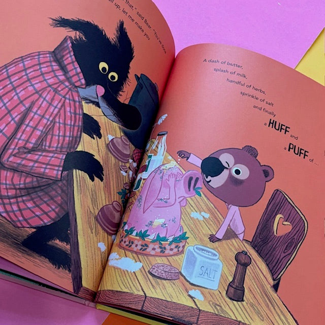 All day long, fairy tale characters have been knocking on Bear's door. They all want his scrumptious porridge. But Bear just wants to read his brand new book.