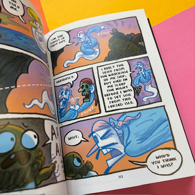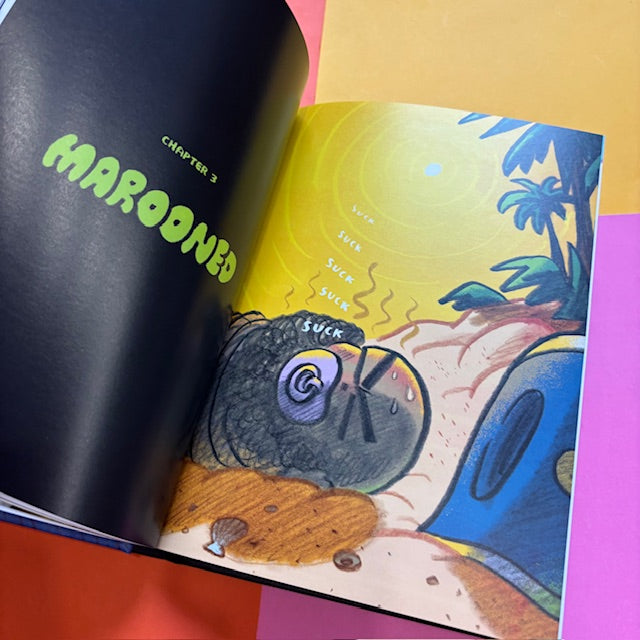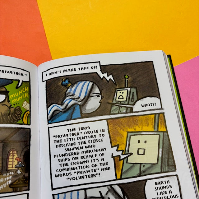 In the fourth installment of Mac Barnett and Shawn Harris’s New York Times-bestselling series our heroes—First Cat, LOZ 4000, and the Moon Queen— encounter Captain Babybeard and his crew of swashbuckling pirates. After Captain Babybeard steals a treasure map from the Queen of the Moon, the notorious pirate sees nothing but piles of gold in his future. But a mutiny, led by his first mate, the Martian Pirate James Plantain, leaves Babybeard marooned on a deserted island.