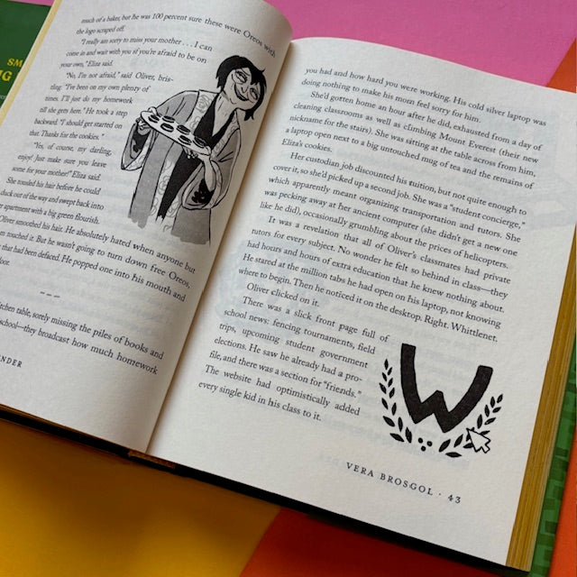 A debut illustrated middle grade adventure novel from bestselling author and illustrator Vera Brosgol (creator of Anya’s Ghost, Be Prepared, and Plain Jane and the Mermaid), where magic, mystery, and a marvelous mailbox take two kids on an incredible journey. Perfect for fans of Greenwild and The Lost Library and emerging readers ready to move from graphic novels to novels. *This heavily illustrated middle grade adventure novel is page-turning and accessible, and features a deluxe package with dynamic yellow edges.* Be careful what you wish for… After everything they’ve been through, Oliver and his mom finally have a place to call home. But Oliver’s fresh start feels more like a dead-end at his fancy new private school, where kids fly in on helicopters, wear the latest and most expensive sneakers, and go on luxury vacations. Oliver is only there because his mom’s the school custodian. Oliver wishes his life could be easier. And then one day, after slipping a wish into a mysterious mail slot, it suddenly comes true. Pizza for dinner? Yes! The rarest sneakers in the world? Yes! Everything he could ever want, without spending a cent? Yes, yes, yes! Oliver’s dreams are finally within his grasp… but what happens when he discovers that his wishes don’t come for free?