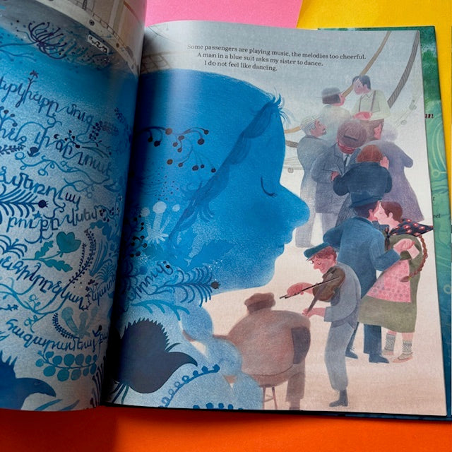 Rose is what my parents call me: Dzovinar, their rose by the sea. Dzovinar (“zill-ven-ar”) lives with her family in Armenia, where the hillside is dotted with sheep and the apricot trees bloom every spring. She loves her home—but one day, soldiers storm her village, and she returns to an empty house. Their parents gone, Dzovinar and her sister are forced to flee. Afraid and alone, they journey across the desert, then over the ocean: first to France and then to America, where they hope a new future will bloom.