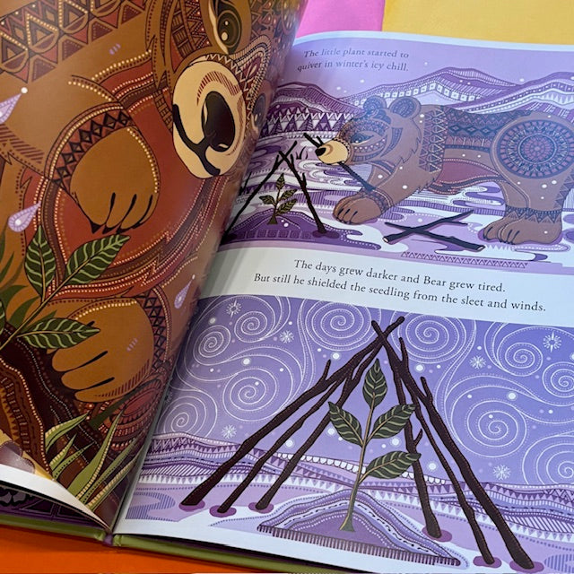 But when Bear finds a lonely seed, he works tirelessly to help it grow, seeking words of advice from the few animals that pass by. He shades it from the harsh wind and cold snowy season, but nature's power is unavoidable and soon it is time for him to hibernate. Bear hopes that by the time he wakes up, his determination will help the forest renew.