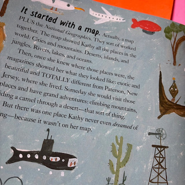 Growing up, Kathy Sullivan always knew the world was bigger than her neighborhood. She loved to study maps and wonder about distant places. And when she was six years old and saw Sputnik in the sky, she knew space would be the most amazing adventure of all.