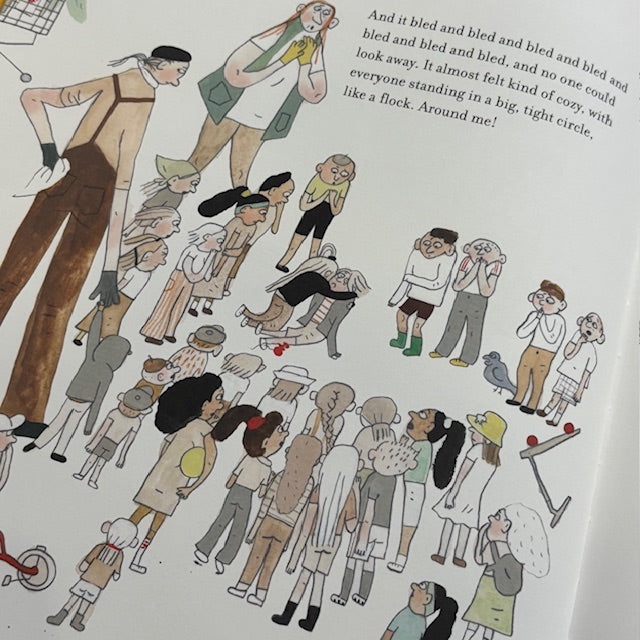 Feel the rush of the game as you dash around the ping-pong table, laughter and shouts filling the air. Your heart races. Then, a sudden stumble sends you tumbling down, and the world pauses - a sharp pain, a bloody knee. For a moment, for a week, you're the centre of attention. You bask in a warm glow of sympathy and curiosity from your peers. But as days pass and the wound heals, the whispers fade and the crowd shrinks. But what happens when life returns to normal? The fleeting spotlight, once thrilling, leaves you wondering about who you'll be once the bandage comes off... International picture book star Emma AdBage is a master at capturing life on a schoolyard: the games, friends, and group dynamics. The Wound, honoured as the Best Swedish Picture Book of 2022, is now available in English for the first time.