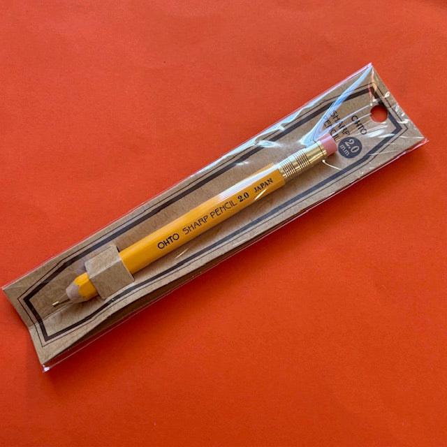 Warm and natural retro-style mechanical pencil with a 2mm lead, featuring a wooden barrel and metal casing. Made in Japan by specialist writing instrument maker OHTO.
