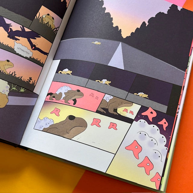A sudden roaring noise rips through the twilight. When the silence returns, a father toad is left lying on the pavement. Gathering his last ounces of strength, he carries his eggs to the salvation of a nearby pond―and from the only unharmed egg hatches an orphan tadpole, Alyte.