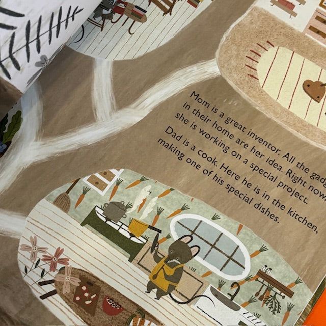 He’d love to have a quiet spot all to himself to do what he likes best: absolutely nothing! But it is almost impossible in his burrow. His noisy siblings are playing ball, dancing, and listening to music. His parents are busy cooking, building gadgets, and reading books.
