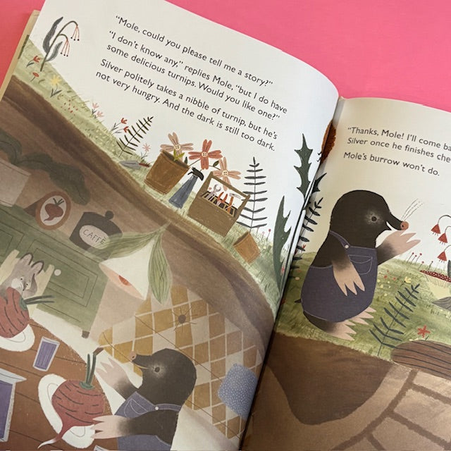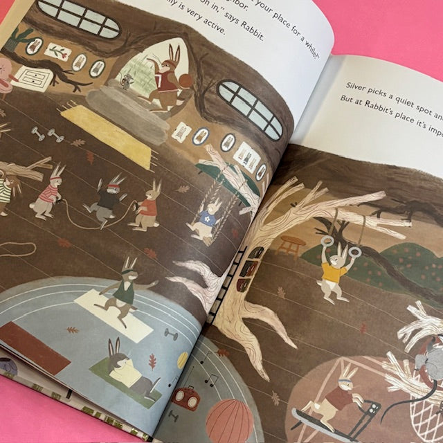 What should Silver do? He tries to find refuge in the burrows belonging to his forest friends, but finding a place all to himself is harder than he thought. There isn’t a single spot in the burrow that’s quiet enough for him to do nothing at all…Join Silver along his journey to find a safe hideaway—just for him! Filled with stunning illustrations, A Place Just For Me is a charming reminder of honoring our own spaces and finding a quiet spot to think in our busy world.