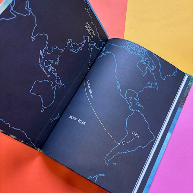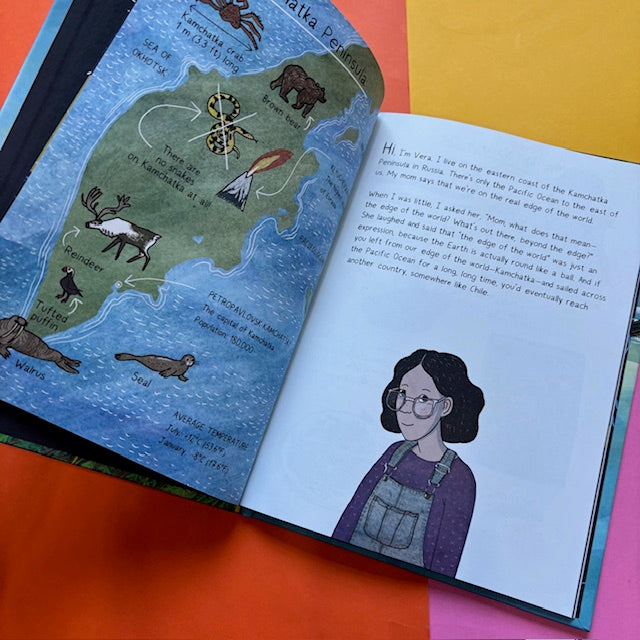 Vera and her family live on Russia's Kamchatka Peninsula, a place that feels like the edge of the world itself. Lucas and his family also say they live on the edge of the world, but their home is thousands of miles away on the coast of Chile. Vera spends her days devouring fantasy books, throwing balls to her dog, and longing for a friend who would care about the treasures shes hidden underneath the alder bush. Lucas spends his days looking for fossils, playing solo games of soccer, and wishing for a friend who would read with him on the best branch of his favourite tree. One evening, both Lucas and Vera head to the beach, blink their flashlights into the dark and discover that the edge of the world is not such a lonely place after all.