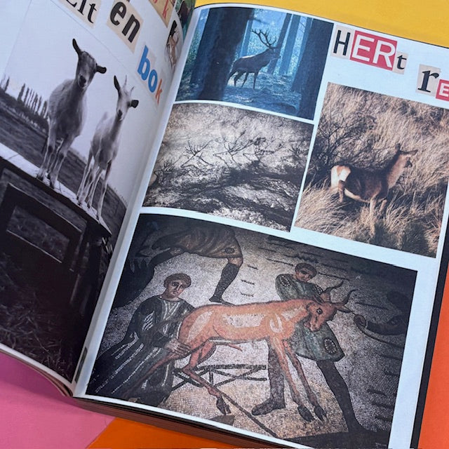 Lous Martens has five grandchildren - Jaap, Zeno, Anna, Julian, and Luca - and has begun making an animal scrapbook for each newcomer to the family. Although it is seventeen years since the first, Jaap, was born, none of the five books are finished yet. Consisting of loosely pasted pictures of animals that were clipped from newspapers and magazines about art, literature, and science, plus stamps and photographs from advertising brochures, the books are enjoyable for their small, ever-evolving changes as new material is added. Interestingly, the books were never intended to be published, but are now grouped into one big volume, an embodiment of familial love and dedication.