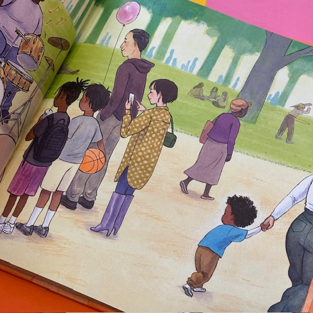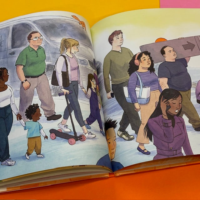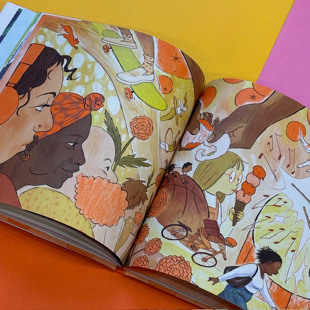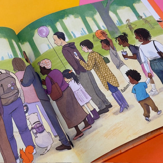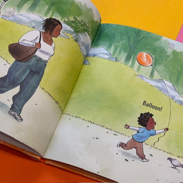 In this nearly wordless book, sharp-eyed readers will spot something orange and round in every scene as they join an endearing journey from disappointment to hope to a surprise ending better than they could have imagined. A balloon, seek-and-find play, and a (literally) warm-and-fuzzy ending—who could ask for more?