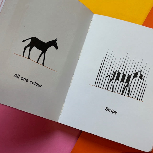 A small click, a big bang. A sleek limo, a compact car. Contrasts at every turn! This tiny, vibrant red book, with its minimalist design, surprises at every page with a playful mix of opposites.