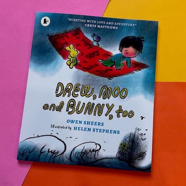 Poet Owen Sheers and award-winning illustrator Helen Stephens have beautifully imagined the story of a little boy named Drew who sets off on an adventure with his best friends, Bunny and Moo. As the three fly around the world on a magic rug, powered by the friendship they share, they run into pirates and trouble on the dark sea. Can the three best friends find what they need to return home?
